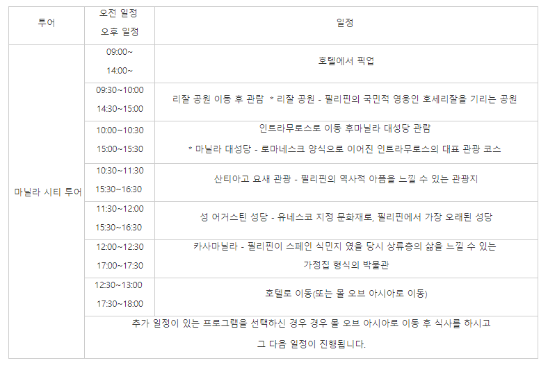 마닐라에 있는 유명 관광지를 반나절만에 돌아볼 수 있는 알짜 프로그램입니다