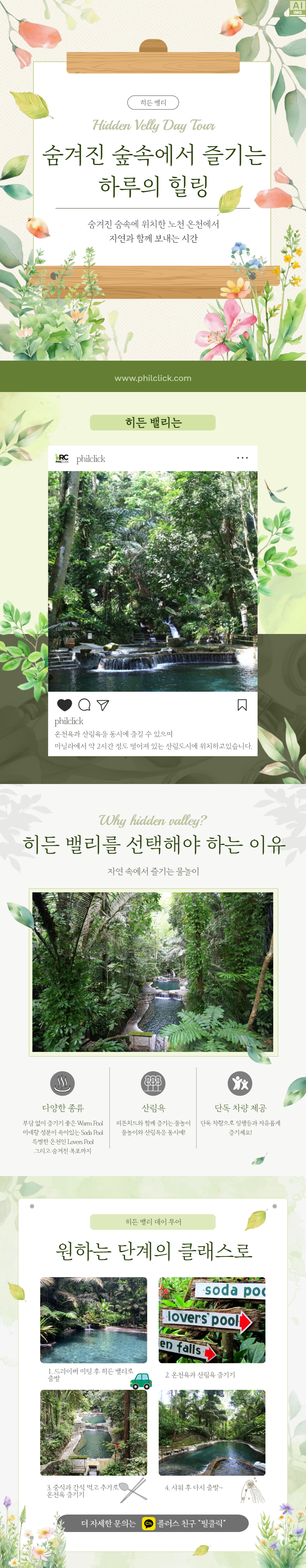 수정같이 맑은 폭포수와 샘물, 환상적인 꽃과 나무들, 이름 모를 새들이 지저귀는 은밀한 계곡이 관광객을 맞는 곳. 그곳이 바로 히든밸리입니다.