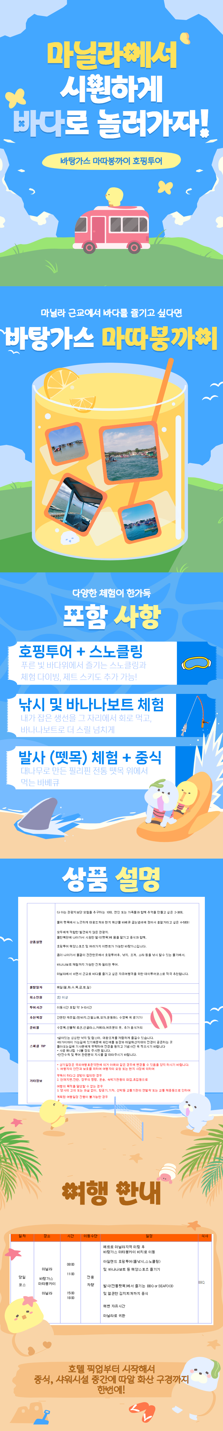 호핑투어 해양스포츠 및 여러가지 이벤트가 가능한 바탕가스입니다.