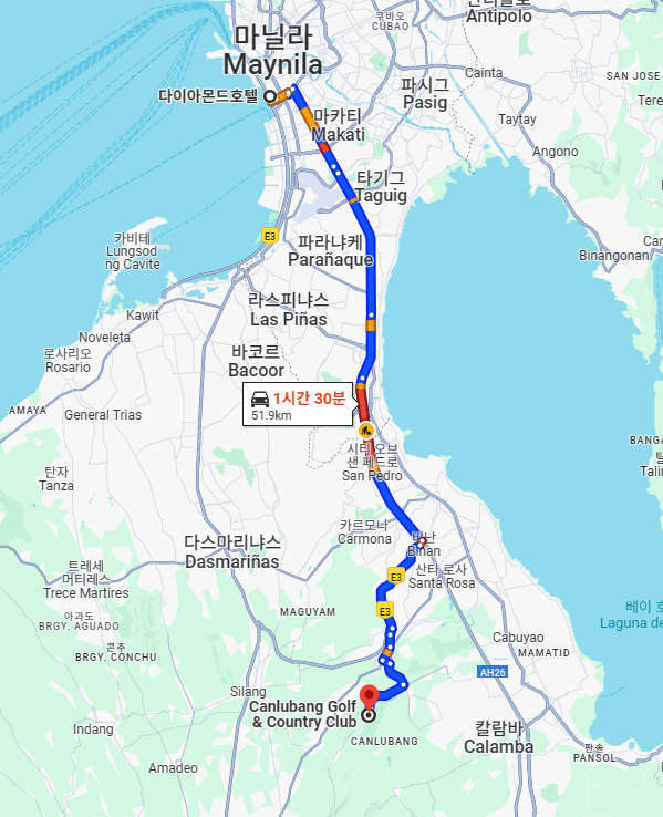 마닐라에서 접근성이 좋음. 페어웨넗고 그린은 홀 마다 제각각 스피드가 다름 약간 짜증이 날정도. 전반적인 관리및 직원 친절도는 딱 비용만큼 이네요