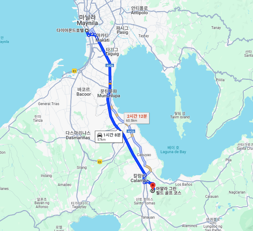8시대 티업이라 금요일임에도 불구하고 마닐라 시내에서 차량으로 40분정도 밖에 안 걸렸어요. 위치가 너무가까워 좋아요.