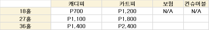 멤버쉽 위주로 운영되고 있으며 필리핀에서 가장 비싼 그린피를 자랑하는만큼 평일 주말 할 것없이 비교한 한적하게 편안한 라운딩을 즐길 수 있습니다.