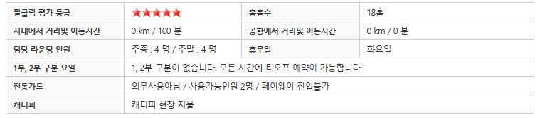 그러나, 고산 지대에 있는 코스로 업다운이 심해 티업 장소에서 그린이 보이는 곳이 몇군데 되지 않는 단점이 있습니다. 그래서 이 곳에서는 캐디가 방향 표시를 위하여 깃대를 들고 다니며 안내해주곤 합니다.
