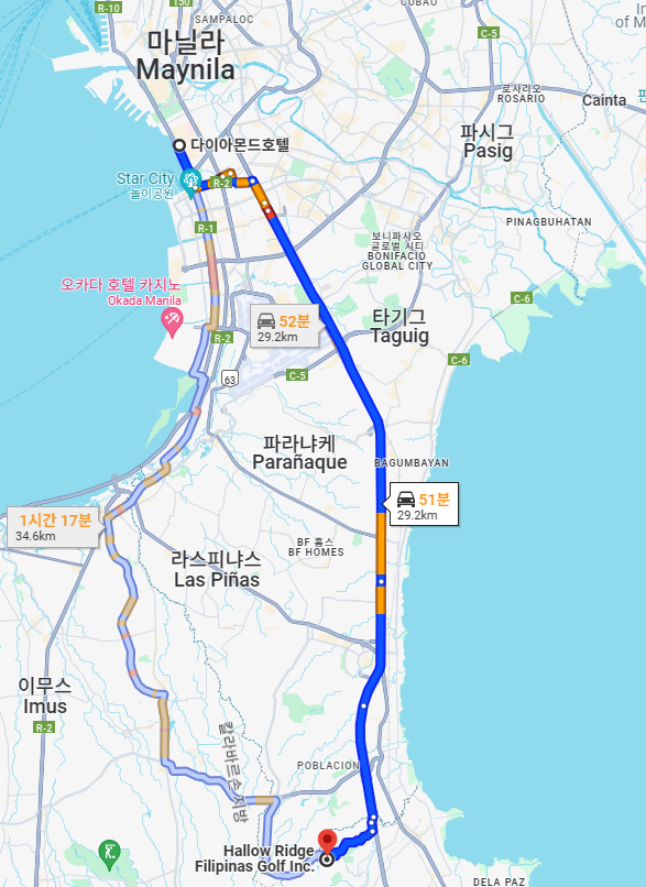 ▣할로우 릿지 필리피나스 골프 (구-KC 필리피나 골프)는 초급자와 중급자들에게 잘맞는 난이도를 가지고 있으며, 지대가 높아 바람이 많이 부는 편입니다. 페어웨이 주변 망고나무가 많아 경치가 아름다우며, 적당한 난이도와 시내에서의 가까운 거리를 이유로 골퍼들에게 인기가 많은 곳입니다.