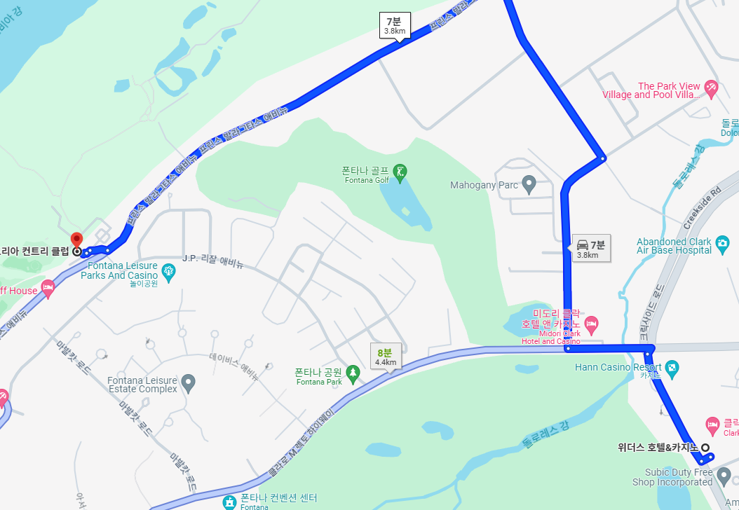마닐라 출발시 약 180분, 클락 CDC 출발시 약 10분 소요 예정입니다.