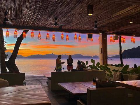 선셋으로 유명한 엘니도 코롱코롱비치에 위치한 파노라마의 바다를 바라보며 해변디너.
